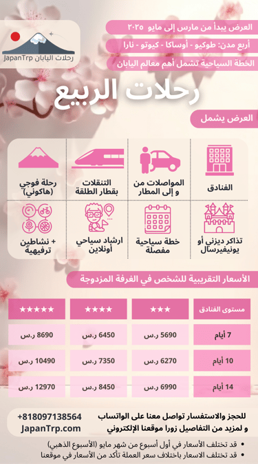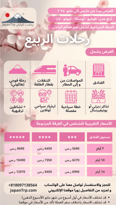 عروضنا الموسمية تسهل لك رحلتك لليابان وتفتح لك أجمل آفاق السياحة في هذا الكوكب الجميل